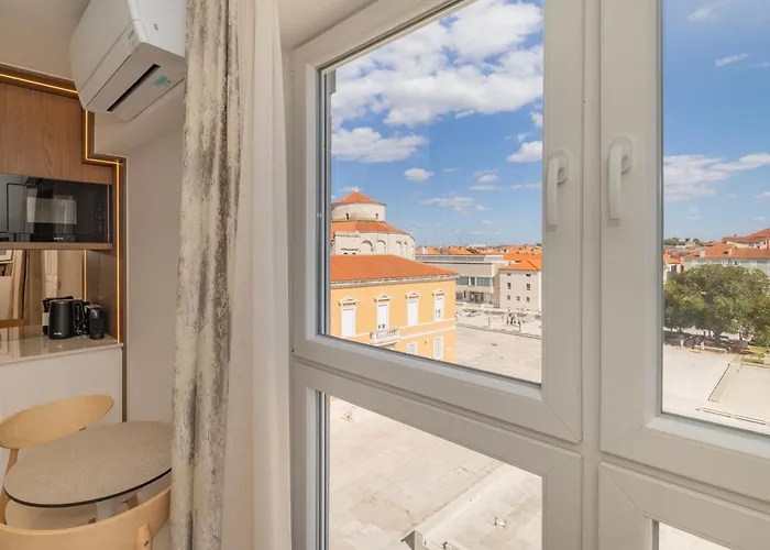Luce Sul Mare Studio Apartment 1 Zadar, Arkeoloji Müzesi'a sadece 200 metre uzaklıkta ve veranda, uydu alıcılı düz ekran sunmaktadır. Bu 1 yatak odalı konaklama yerinde donanımlı bir mutfak ve 1 banyo odası da mevcuttur.